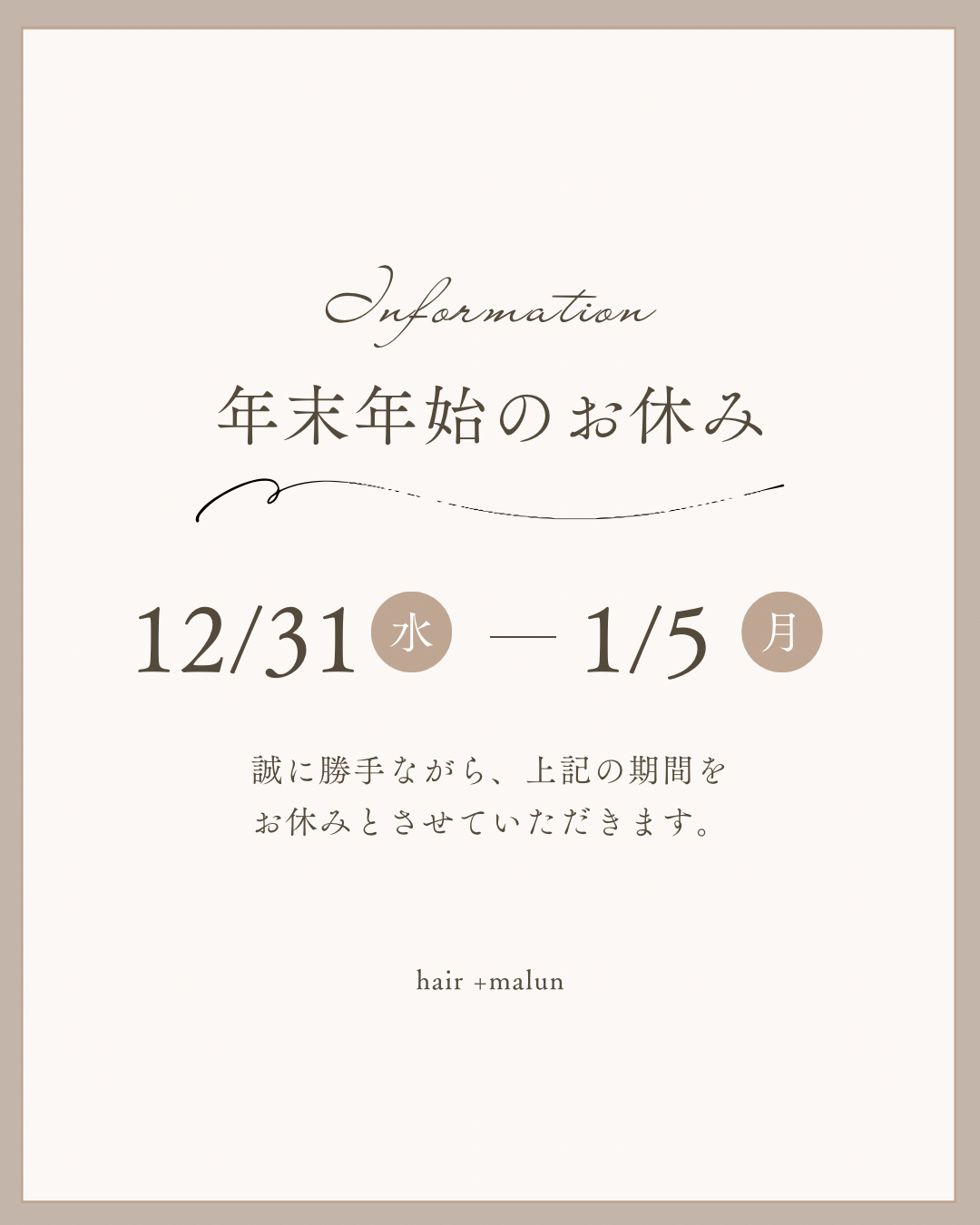いつもhair +malunをご利用いただきありがとうございます。